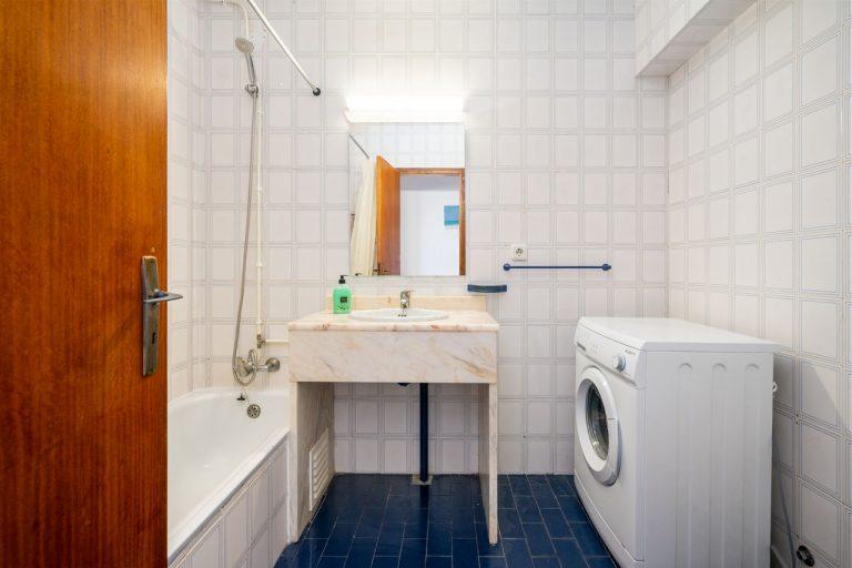 This apartment includes 1 bedroom, a living room and a flat-screen TV, an equipped kitchenette with a dining area, and 1 bathroom with a bath and a washing machine.